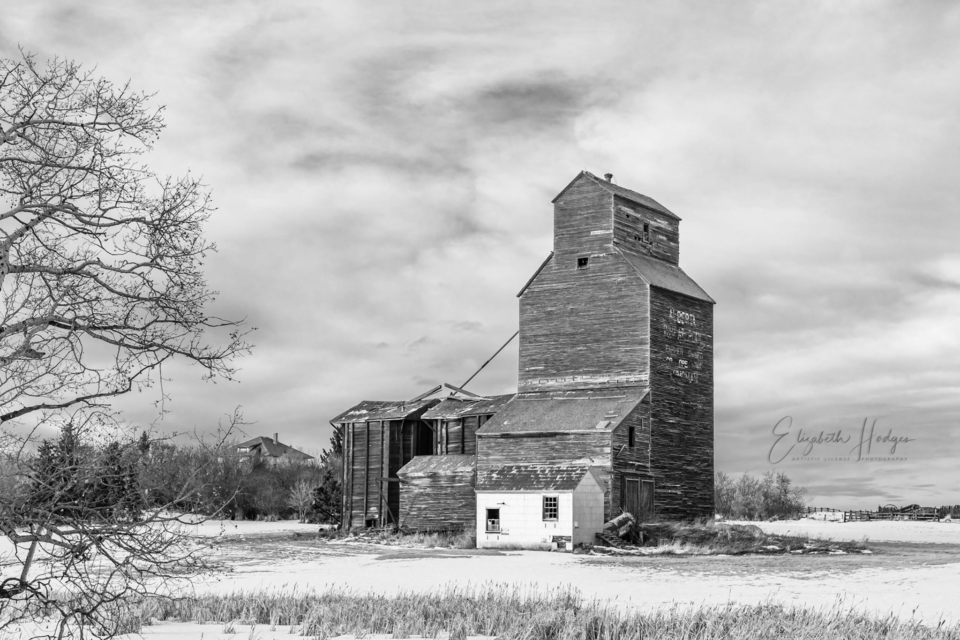 Wandering around the Alberta countryside not too far from where we live I collected a few images that appealed to me. I grew up on the prairies and farming is in my blood. Barns and grain elevators and barbed wire fences - familiar sites I've taken for granted most of my life now captured by my camera. It seemed that a black and white treatment was the most suitable given all the.... white in the landscape.